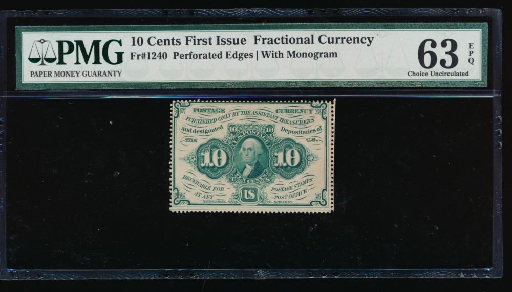 One 10 Cent First Issue Fractional Note PMG 63EPQ.