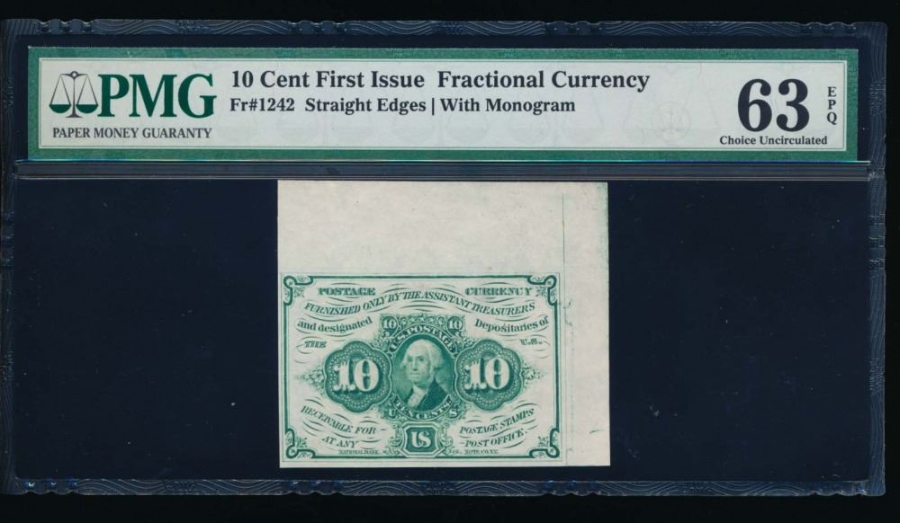 One 10 Cent First Issue Fractional Note PMG 63EPQ.