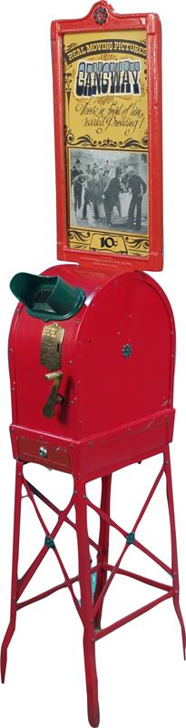 10 Cent Floor Model Mutoscope View Machine by International Mutoscope Reel Co., Inc. New York, USA. w/ marquee "Gangway - Those In Front Of Him Needed Prodding!" w/ keys