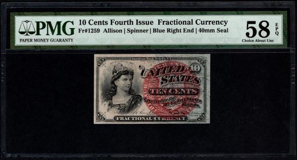 One 10 Cent Fourth Issue Fractional Note PMG 58EPQ.