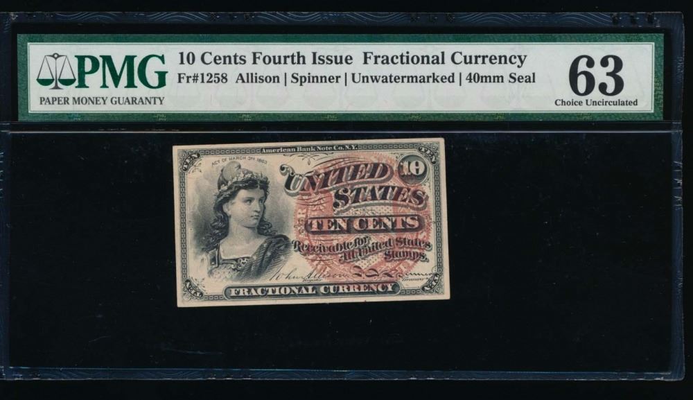 One 10 Cent Fourth Issue Fractional Note PMG 63.
