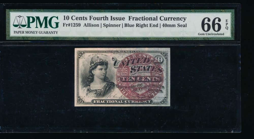 One 10 Cent Fourth Issue Fractional Note PMG 66EPQ.