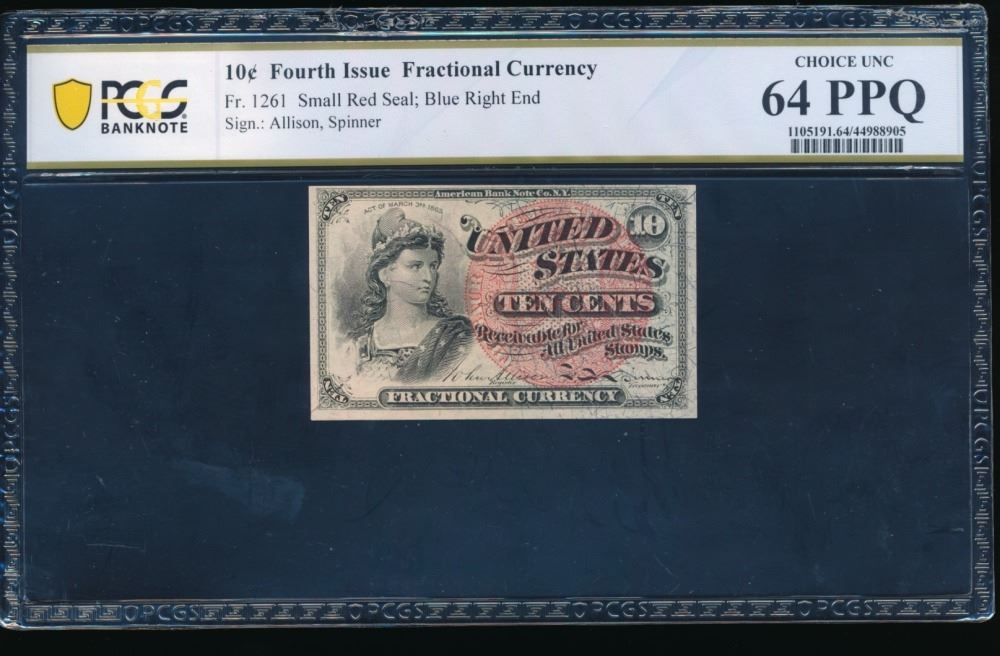 One 10 Cent Fourth Issue Fractional PCGS 64PPQ.