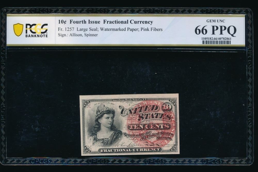 One 10 Cent Fourth Issue Fractional PCGS 66PPQ.