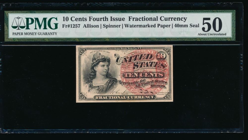 One 10 Cent Fourth Issue Fractional PMG 50.