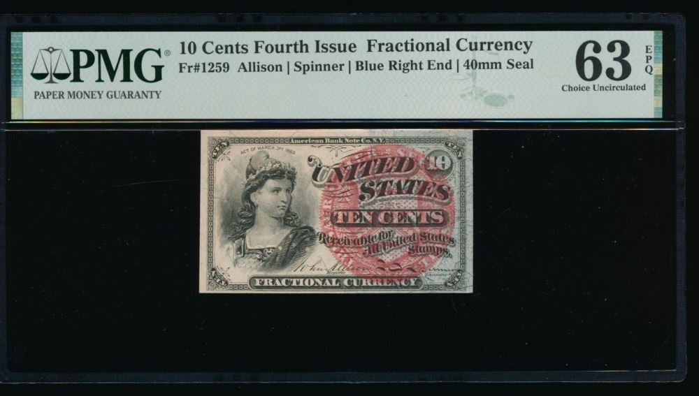 One 10 Cent Fourth Issue Fractional PMG 63EPQ.