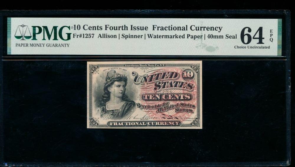 One 10 Cent Fourth Issue Fractional PMG 64EPQ.