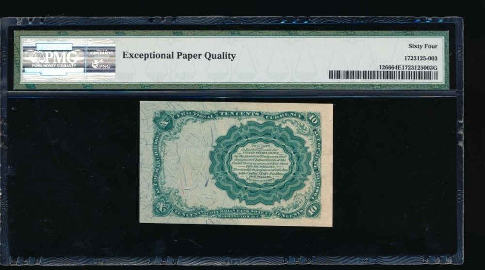 One 10 Cent Fractional Fifth Issue Currency PMG 64EPQ.