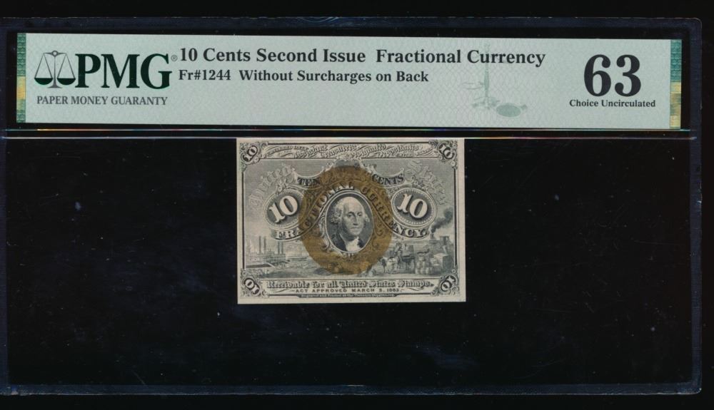 One 10 Cent Second Issue Fractional Note PMG 63.