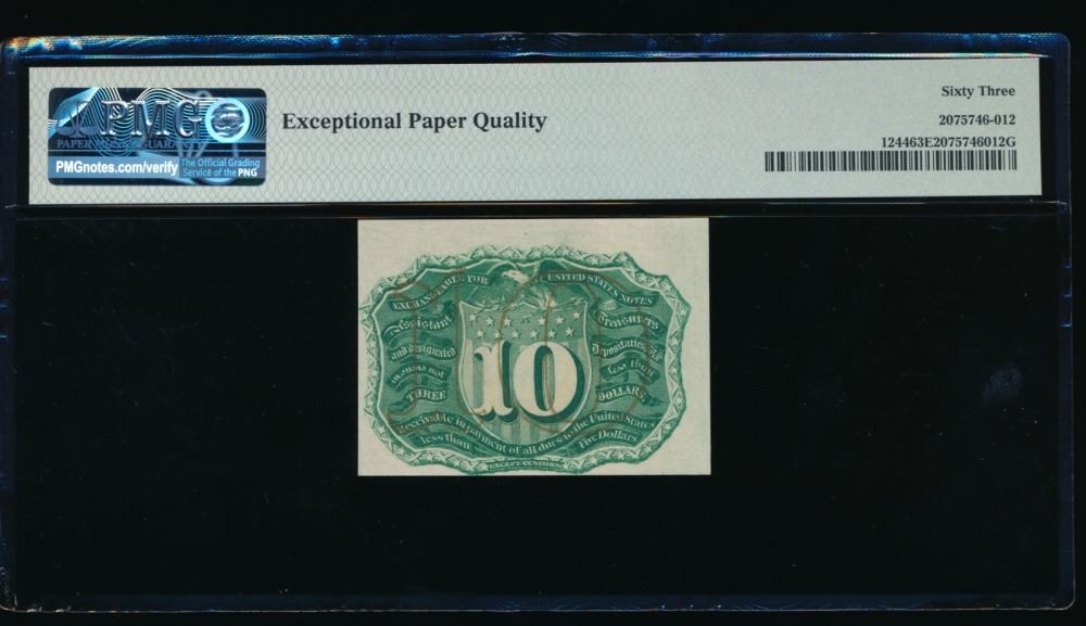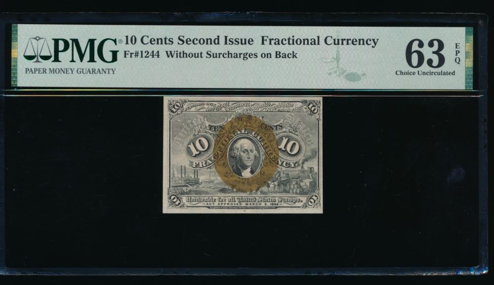 One 10 Cent Second Issue Fractional PMG 63EPQ.