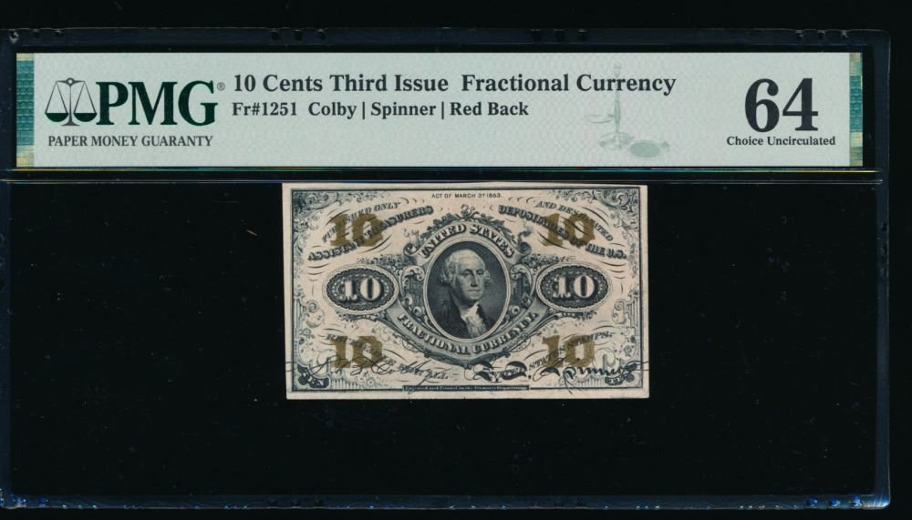 One 10 Cent Third Issue Fractional Note PMG 64.