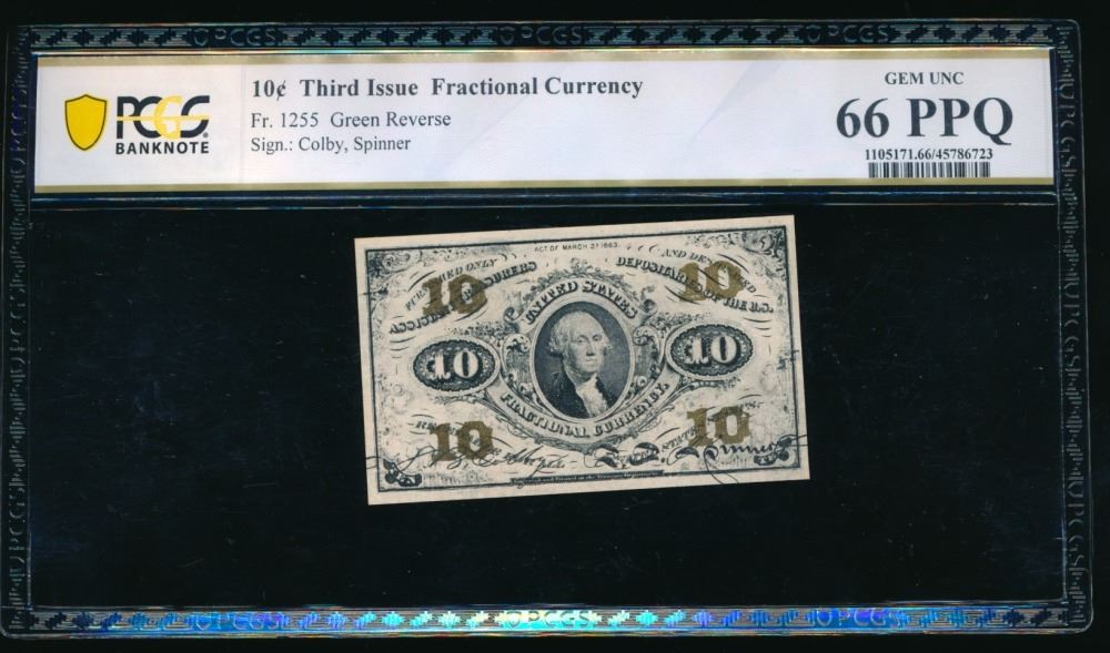 One 10 Cent Third Issue Fractional PCGS 66PPQ.