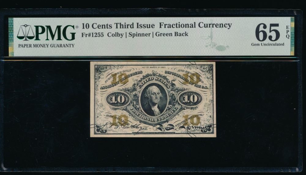 One 10 Cent Third Issue Fractional PMG 65EPQ.