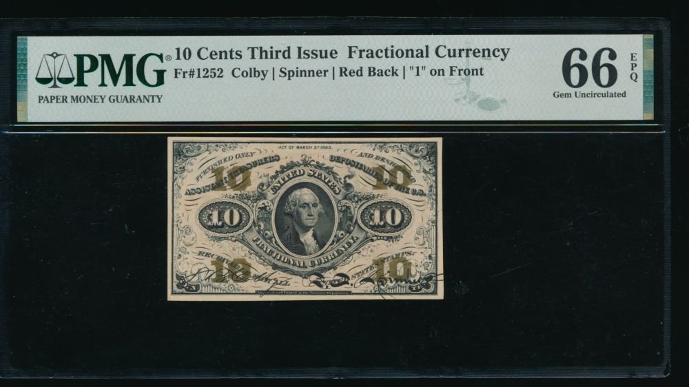 One 10 Cent Third Issue Fractional PMG 66EPQ.