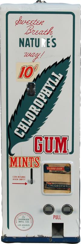 10 Cent Wall Mount Metal Chlorophyll Gum & Mint Vending Machine by Shipman MFG. Co. Los Angeles c1940