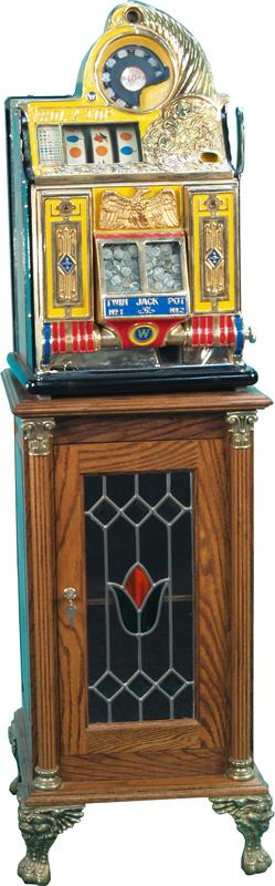 10 Cent Watling Rol-A-Top Twin Jackpot Slot Machine w/ double mint vender on slot machine stand w/ keys