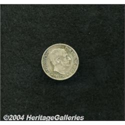 <B>10 Centimos 1885,</B></I> KM145 F-VF. <BR><BR><B>Important notice:</B> Heritage usually auctions material at the rate of 200-250 lots per hour. On some occasions eBay Live bid software or the Internet may not be able to keep up with the pace of the auction. We recommend placing a realistic absentee bid now as insurance to avoid disappointment. Occasionally the auctioneer may eliminate or reject an eBay Live bid, and the auctioneer may also reopen a lot after the close of the eBay live bidding (usually because we missed an audience bid), and may reject your bid even if it shows you as the winning bidder. By bidding via eBay Live, you agree that Heritage may award the lot to another bidder at its sole discretion under the circumstances described above or any other reasonable circumstances. Since eBay bids are not shown to us until we open the lot on the floor, we treat those bids just like floor bids. In most cases the floor responds before the eBay bid is presented to us, due to Internet lag time, so for consistency we have made it a policy that floor bids are always considered first over tie eBay live bids. Also please note that all Heritage lots purchased through eBay Live carry a 20% Buyer's Premium. Please make sure you read the Terms and Conditions before you bid.