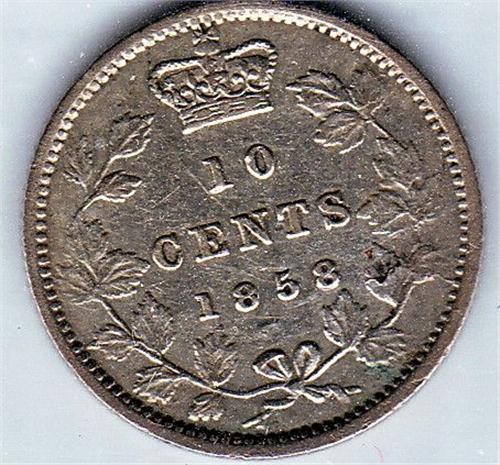 10 Cents 1858 CCCS certified VF-20; Last 8 Doubled. Key Date, Untoned.