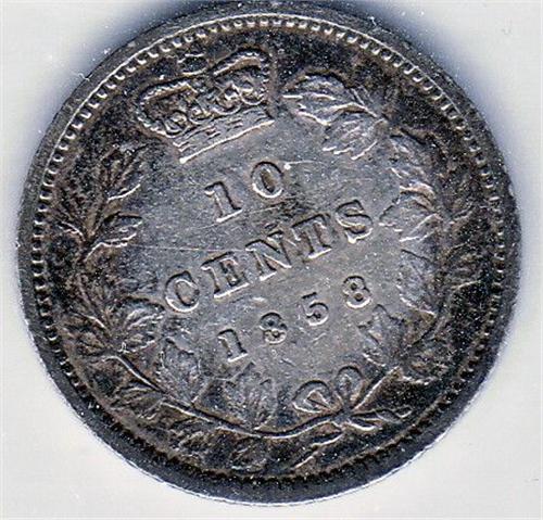 10 Cents 1858 CCCS certified VF-20. Key Date, Lightly toned.