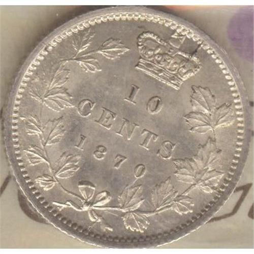 10 Cents 1870, graded ICCS MS-63 Narrow 0. Light gold tone and plenty of luster.