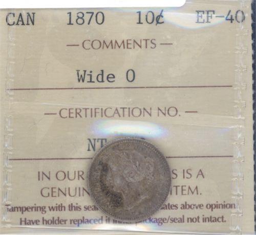 10 Cents 1870, ICCS certified EF-40; Wi