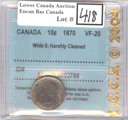 1870 Wide 0 CCCS certified VF-20; Harshly Cleaned.