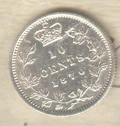 10 Cents 1870, graded ICCS EF-45; Wide 0. Flash white coin.