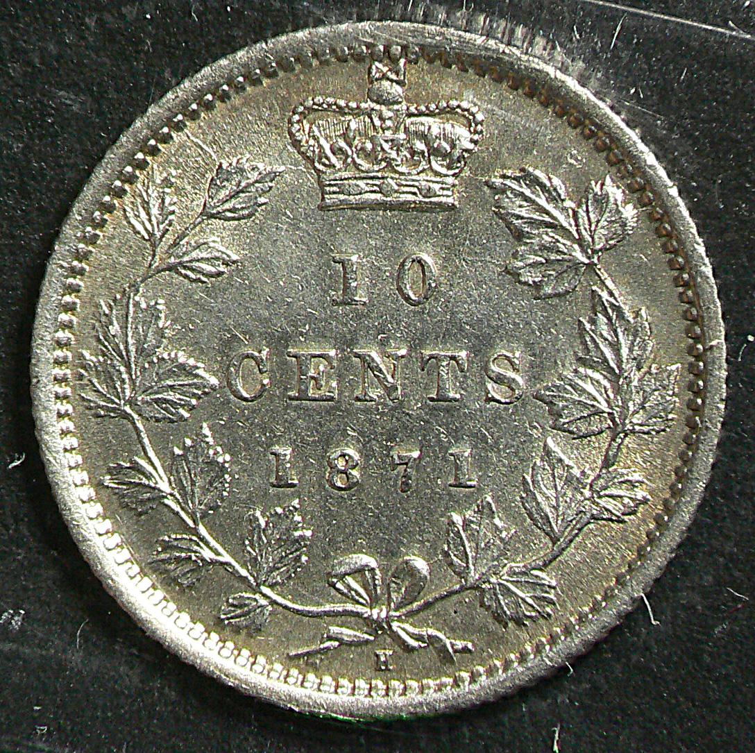 10 Cents 1871H, graded ICCS AU-55, cleaned