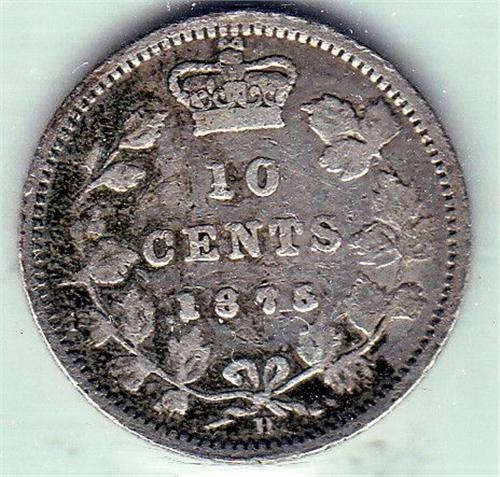 10 Cents 1875H CCCS certified F-15. Key Date, Medium silver gray color.