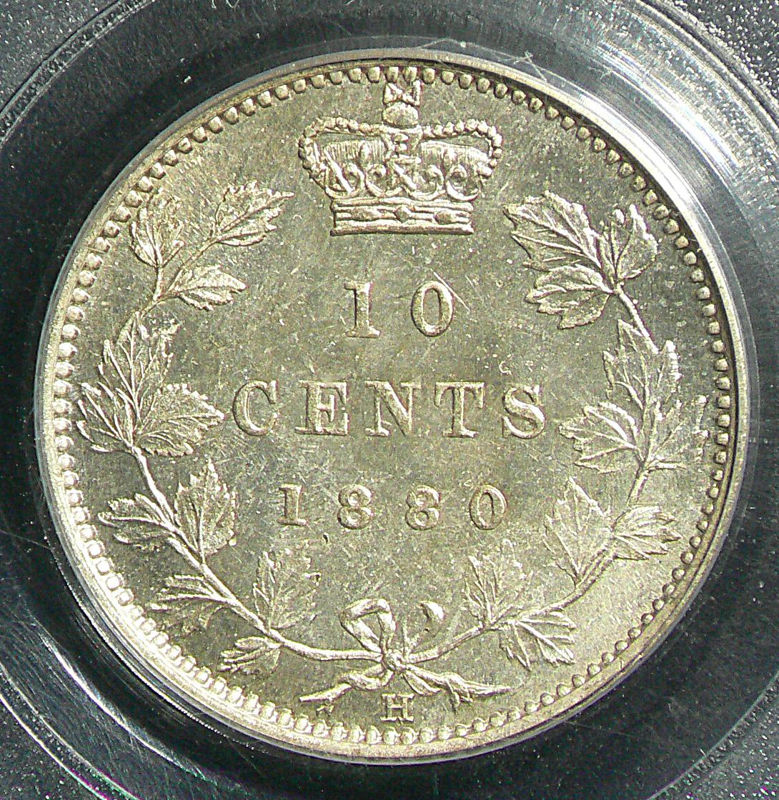 10 Cents 1880H, graded PCGS SP-64. Not Noted Obverse 2, also not listed in Charlton.