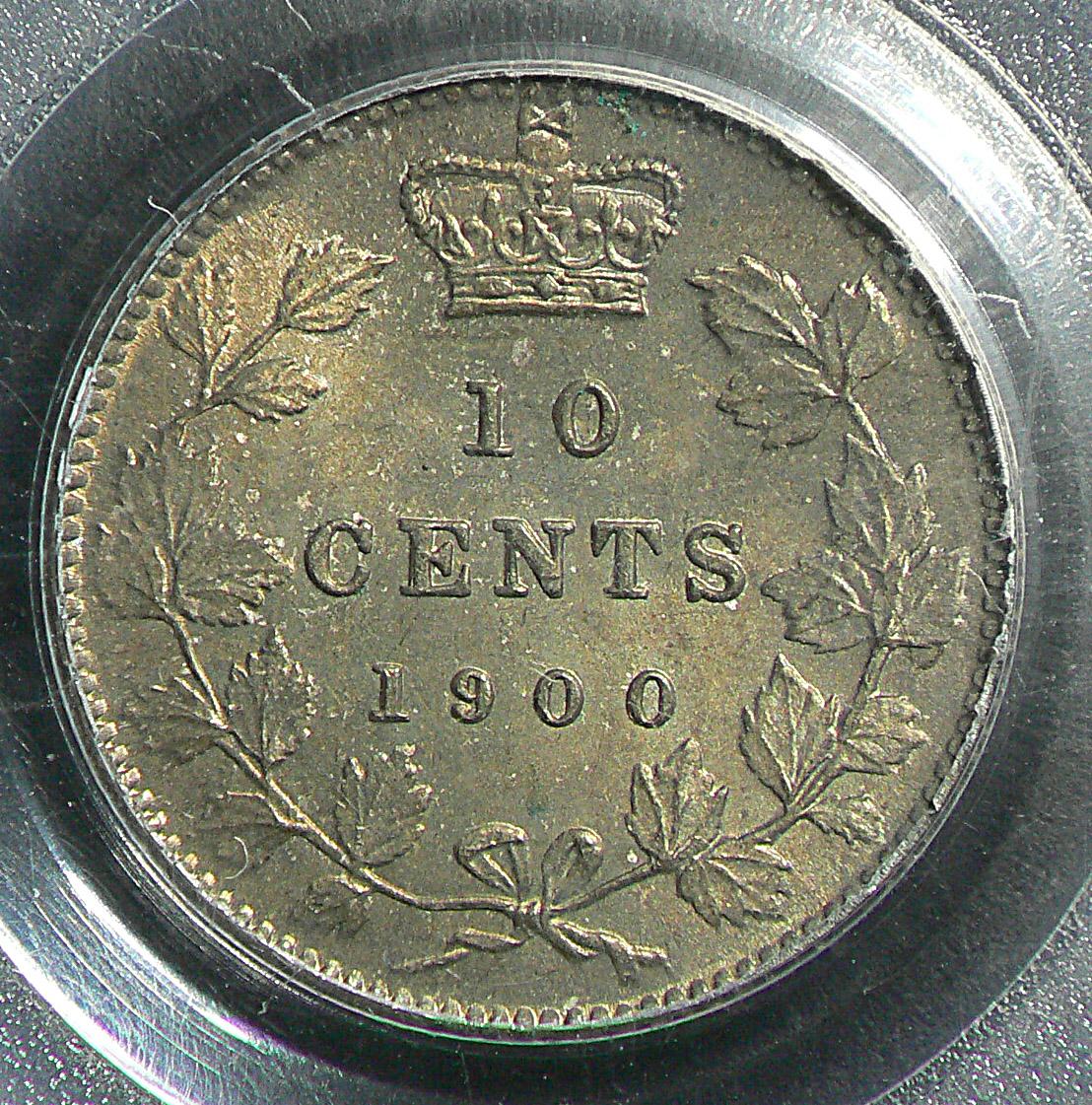 10 Cents 1900, graded PCGS MS-65. Blue gray medium toning.