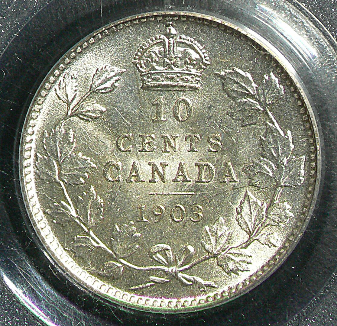 10 Cents 1903, graded PCGS MS-64 & ICCS MS-64. Blast white coin.