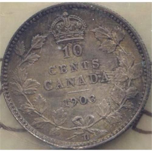 10 Cents 1903H, graded ICCS MS-65. Brown and blue tint give a fabulous eye appeal, a GEM.