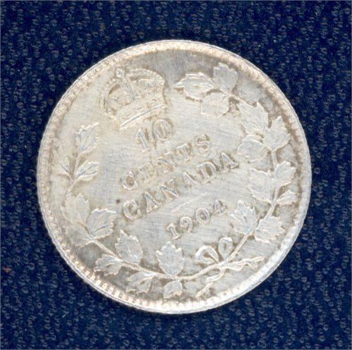 10 Cents 1904, Bright Uncirculated with light hairlines, no spots.