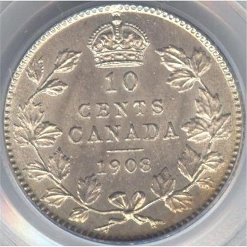 10 Cents 1908, graded PCGS MS-65. Blasting white with a hint of toning and full luster.