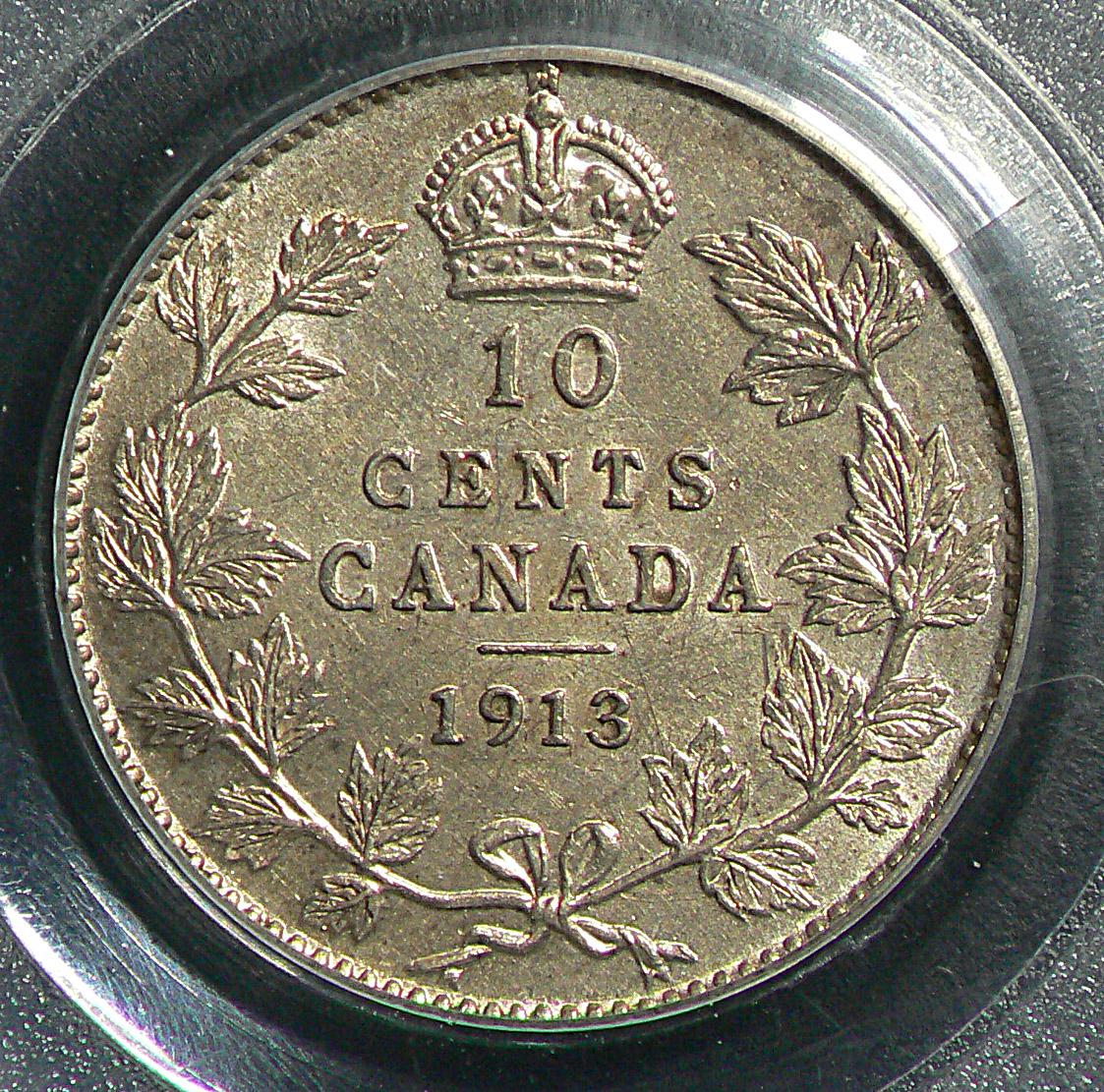 10 Cents 1913, graded PCGS AU-58; Broad Leaves. Scarce coin in higher grades.