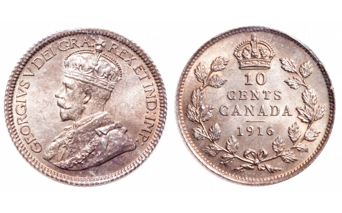 10 Cents. 1916. ICCS graded Gem Uncirculated-65. Attractive orange-gold toning, with near flawless surfaces. Only the faintest imperfections can be detected under magnification.