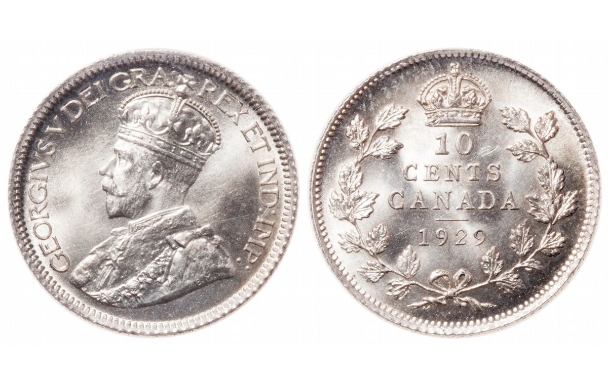 10 Cents. 1929. ICCS graded Superb Gem Uncirculated-66. Deep impressive lustre and powerfully struck details are subtly accented by champagne toning. A superior gem. Tied one of only 3 finest graded by ICCS.