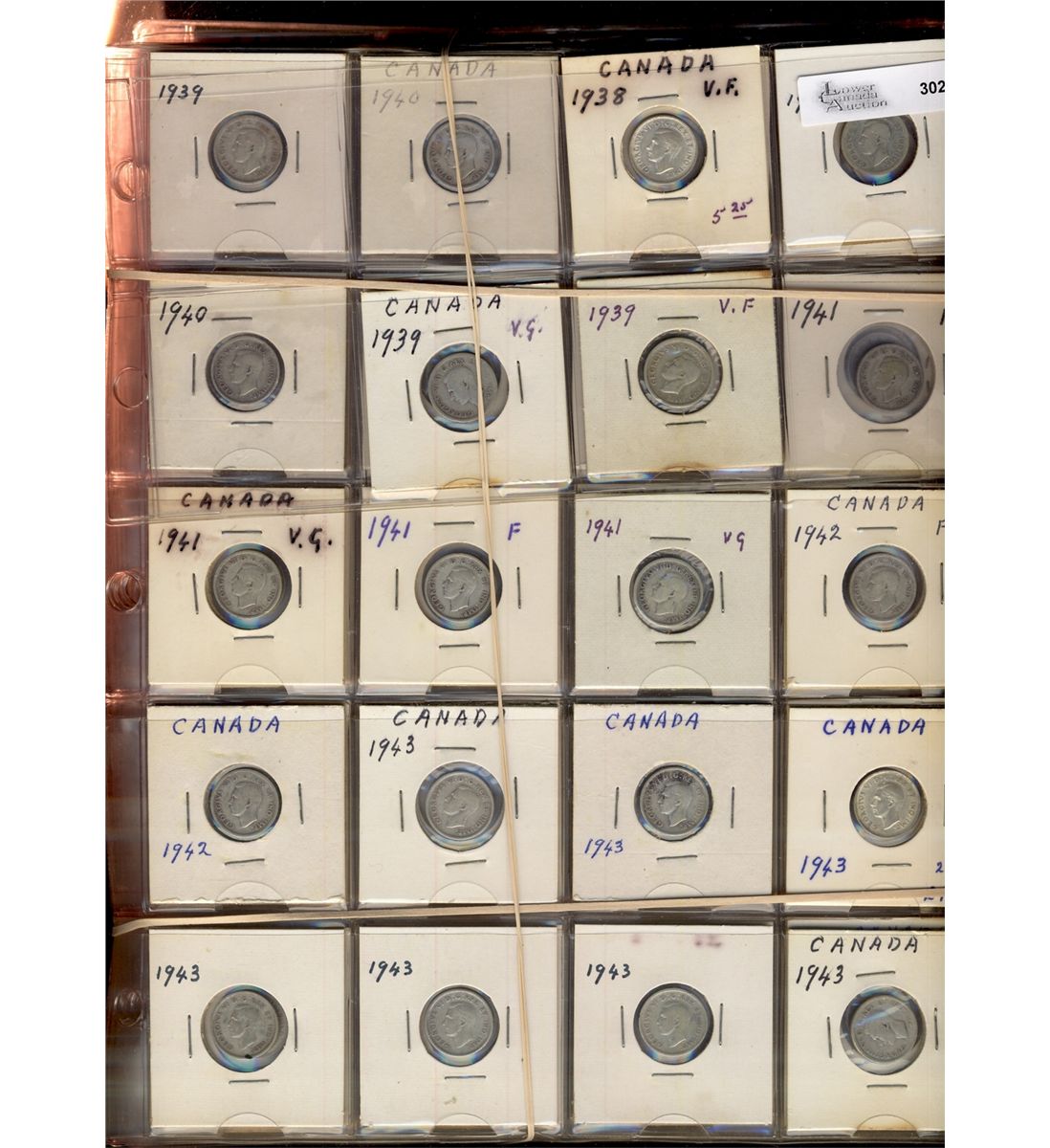 10 Cents 1938 to 1975; lot of 365 pieces, 125 silver issues and rest nickel, Good to UNC.