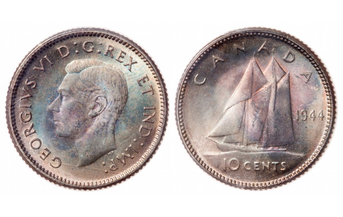 10 Cents. 1944. Cameo. ICCS graded Superb Gem Uncirculated-66. One of only 4 graded MS-66 by ICCS.