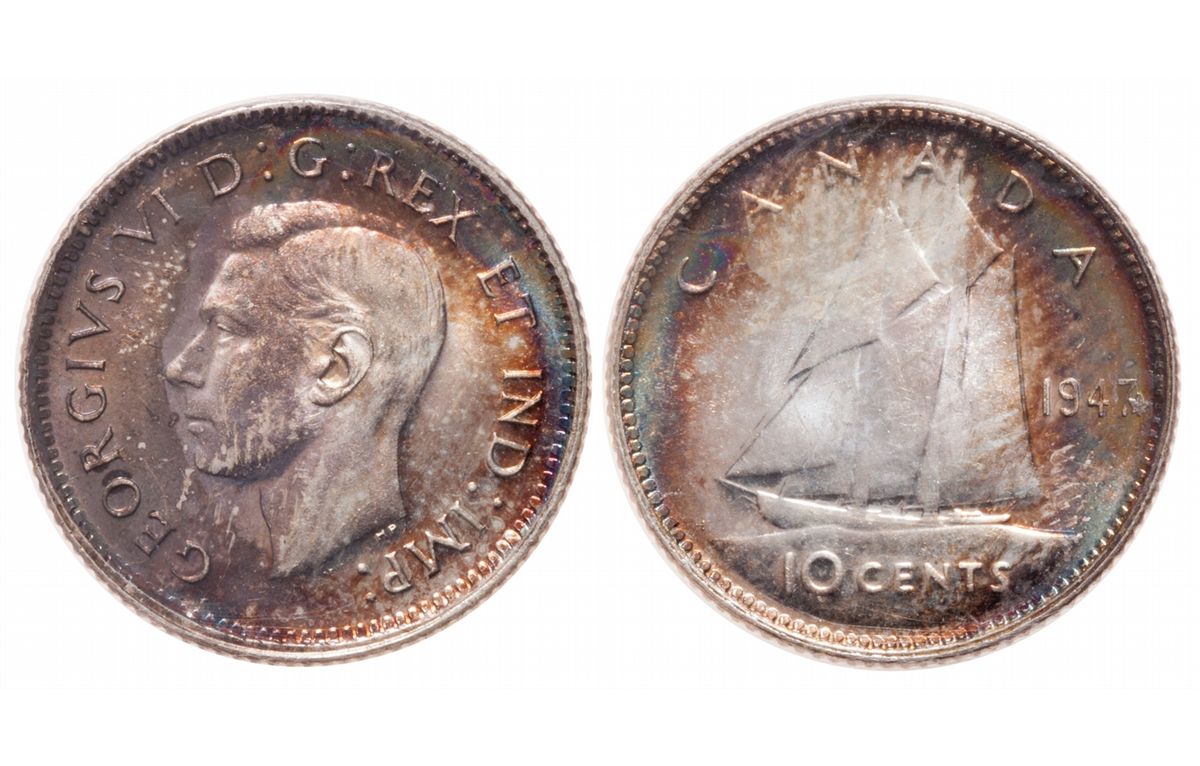 10 Cents. 1947 Maple Leaf. ICCS graded Superb Gem Uncirculated-66. Tied one of only 3 finest graded by ICCS.