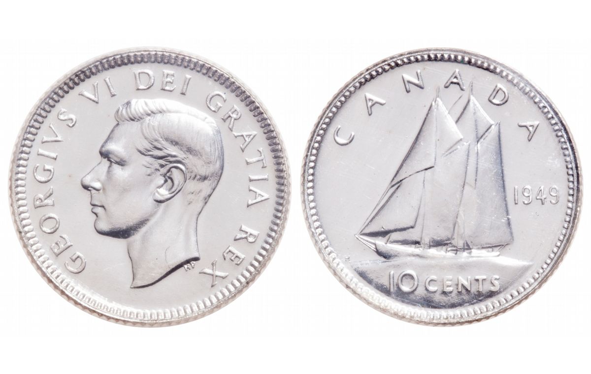 10 Cents. 1949. ICCS graded Specimen-66. Tied one of 7 finest graded by ICCS.