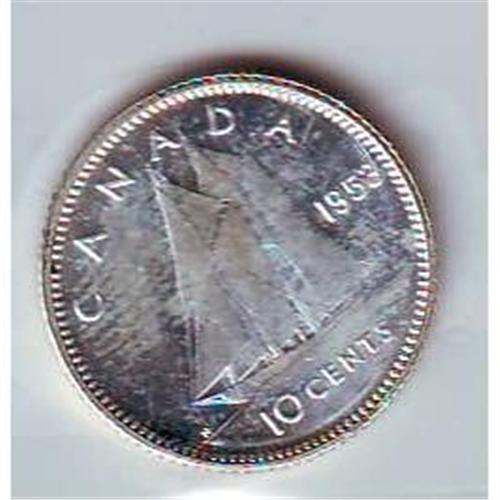 10 Cents 1953, graded ICCS MS-63; No Shoulder Fold, Doubled Date. Scarce variety.