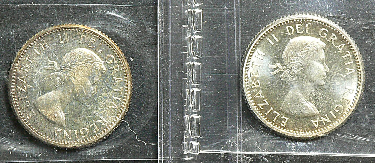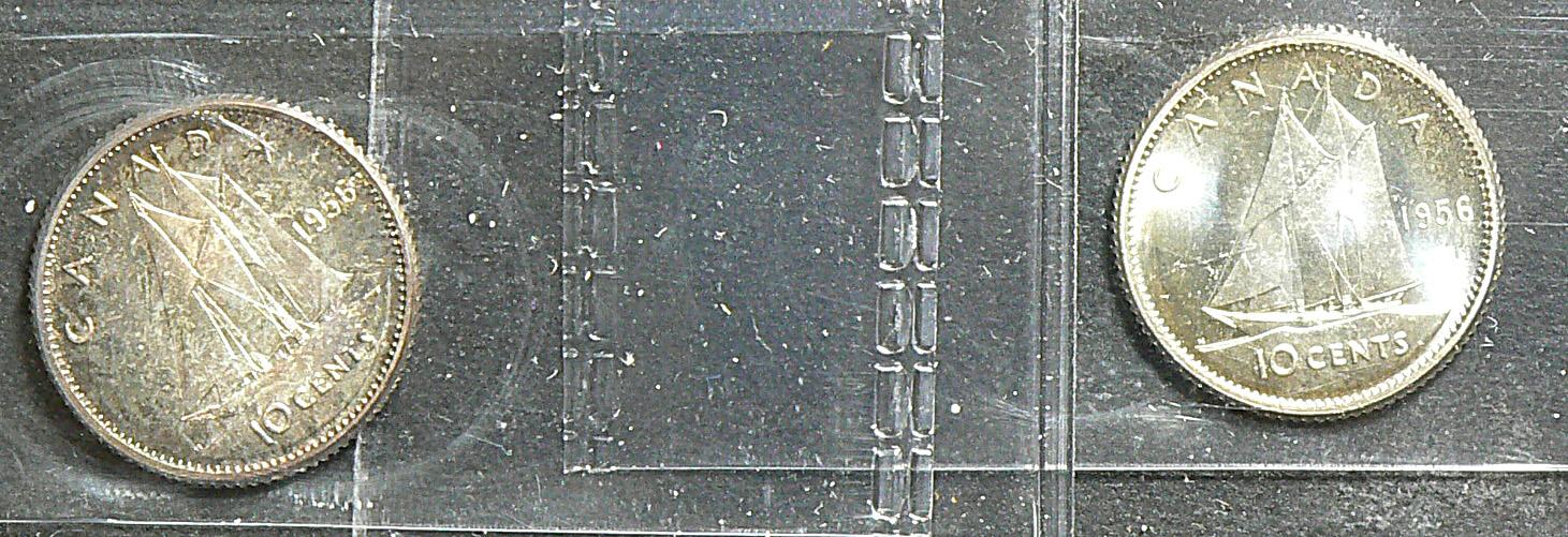 10 Cents 1956, graded ICCS PL-65 Heavy Cameo, Lot of 2 coins