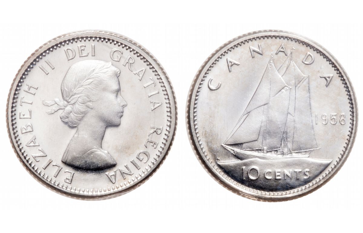 10 Cents. 1958. Ultra Heavy Cameo. ICCS graded Proof-Like-66. Tied finest graded by ICCS.