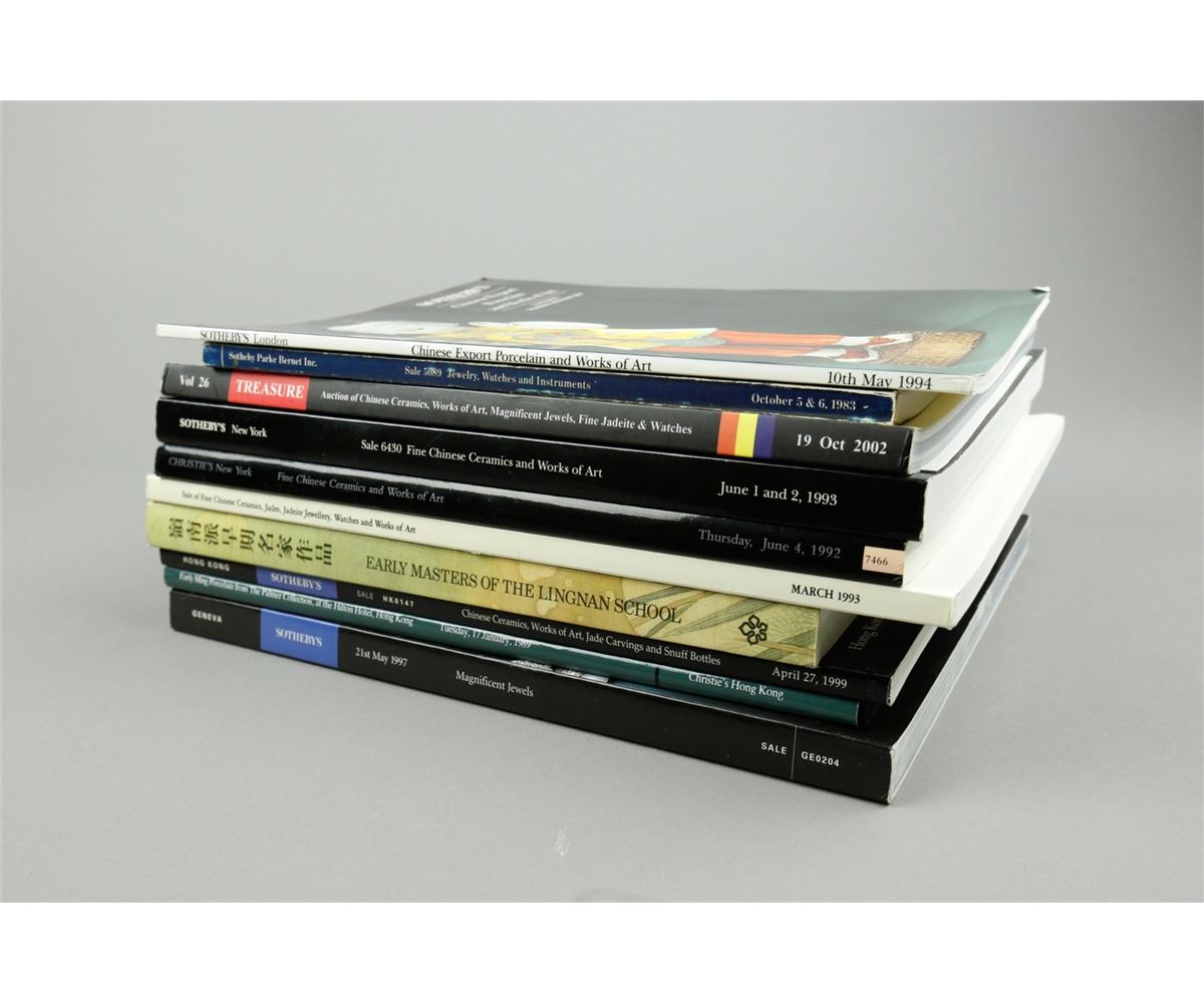 10 Chinese Sotheby's and Christie's auction catalogs; featuring auction catalogues from 1982 to 1999; 20 cm x 13 cm each, 2.5 kg total