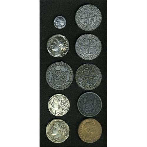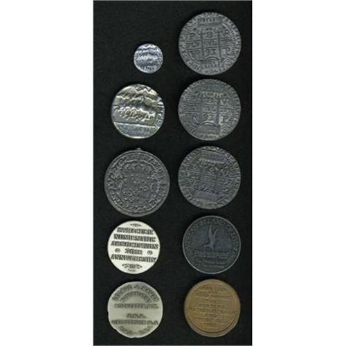 <B>10 Coinlike Medals.</B></I> Silver/bronze. Tokens and medals that resemble ancient coins, pieces of eight that have been made into advertisement pieces for coin clubs, numismatists, companies. Interesting lot.<BR><BR><b>Shipping:</b> Coins & Currency (<a target="_blank" href="http://www.heritageauctions.com/common/shipping.php">view shipping information</a>)