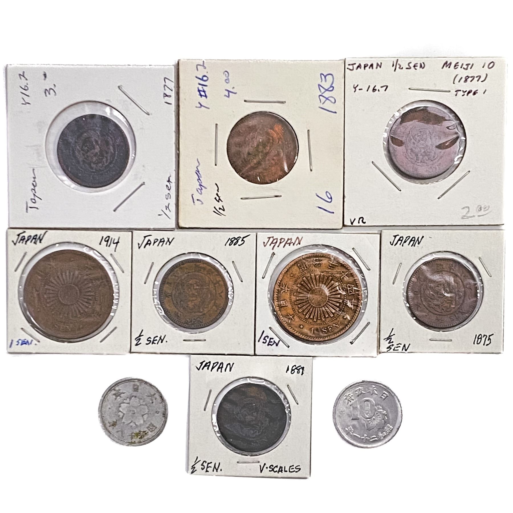 [10 Coins]1875-1946 Japan 1/2 Sen/1 Sen/10 Sen Lot