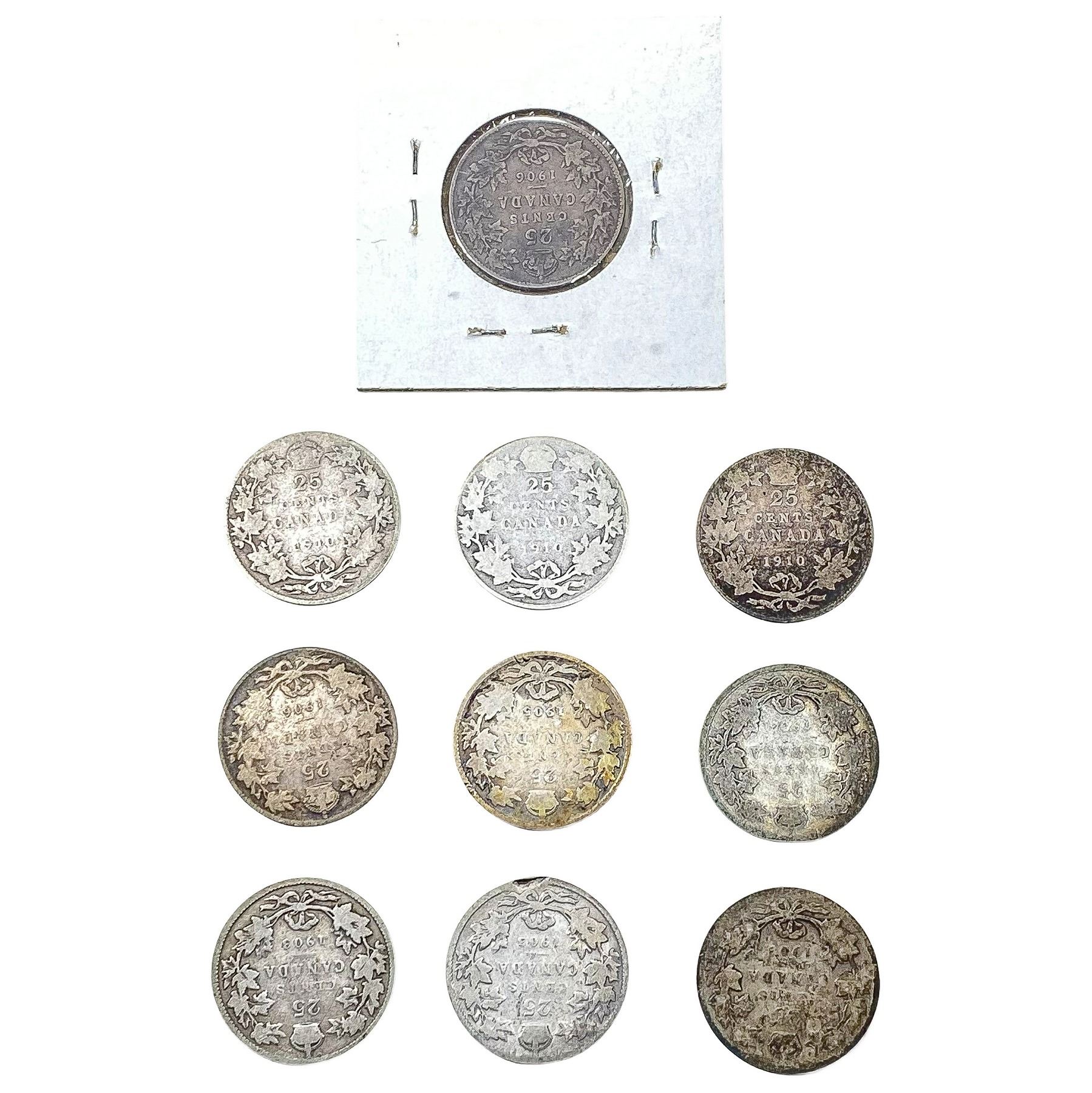 [10 Coins] 1903-1910 Silver Canada 25c VF