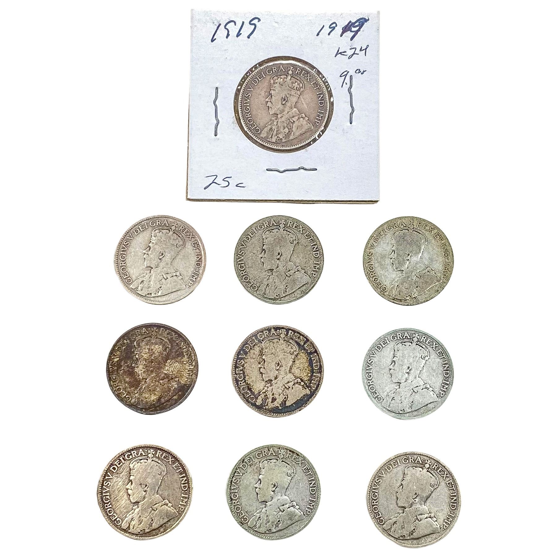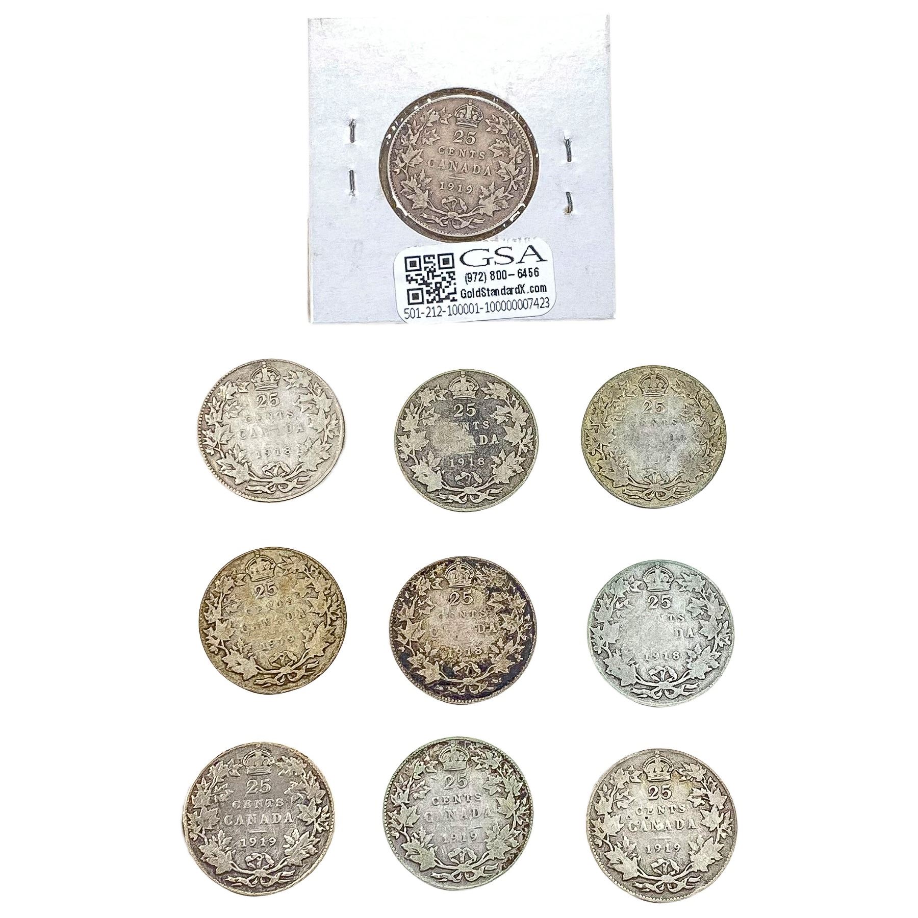 [10 Coins] 1909-1919 Silver Canada 25c HIGH GRADE